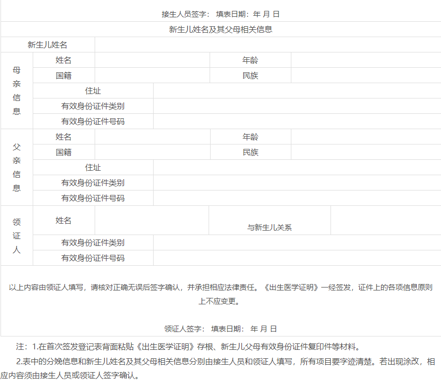 1.新生兒父母一方或雙方為外籍的,“新生兒姓名”欄可填寫中文或英文。
